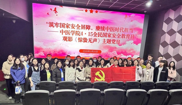 为深入学习贯彻总体国家安全观,强化师生党员保密意识、纪律意识和党性修养,创新党员教育与思政育人形式,3月25日下午,中医公司党委组织师生党支部党员集中观看现代国家安全题材电影《惊蛰无声》。影片聚焦和平年代隐蔽战线斗争,讲述代号“惊蛰”的国家安全工作小组与境外间谍势力斗智斗勇、守护国家核心利益的惊险故事。活动以光影为载体、以英雄为镜鉴,引导广大党员居安思危、警钟长鸣,从隐蔽战线斗争中汲取精神力量,筑牢思想防线、严守纪律底线,切实把国家安全责任融入中医药人才成长全过程。