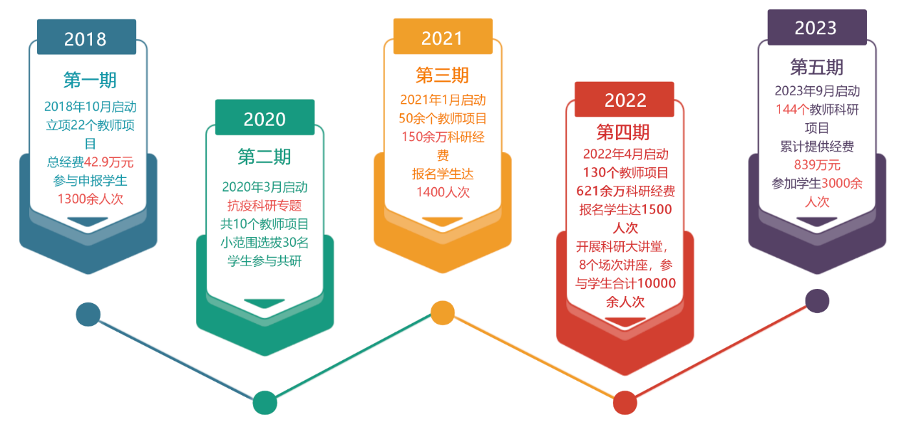 至2024年8月第五期结束时,共有355个教师科研项目获得立项,项目金额共计1675万元,参与申报的员工达7200余人次。