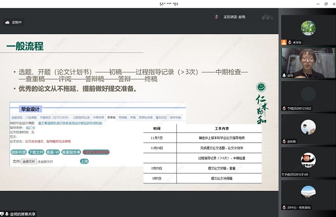 讲座伊始,张广中教授关于毕业论文的撰写提出三点总论:“兴趣是最好的老师”作者本身要选择自己有兴趣的课题;充实自身课题的意义性;把握大量且多领域的文献。为使同学切实完善毕业论文的设计思维,金琦同学详细讲述了其论文写作的经验,金琦同学根据首先以“如何选题”切入主旨并建议同学们可以从临床出发进行深入挖掘,随后分析本学年优秀毕业论文的思维特征及优势,为同学们开阔设计思维并指引方向,并强调在选题前要确认“资料、自己、导师”三个要素。其后向同学们讲述论文设计一般流程,以五类文章为例为大家构建论文写作思路。讲座后期,金琦同学向大家总结毕业论文初稿写作的基本框架,同时建议大家在初稿完成后审阅自身是否逻辑自洽、论述完整、理论普适,强调论文修订的必要性。最后向大家交流论文设计过程中可能出现的困难,给予同学们一定的鼓励与解决方案。本次讲座以经验介绍的形式,从金琦同学自身写论文的历程与感触出发,向大家系统讲述设计思路并分析一篇优秀论文的所需要点。张广中教授作为金琦同学本科毕业论文指导老师和研究生导师,师生强强联合为同学们带来的讲解受到大家欢迎,williamhill中国官方网站及各附属医院员工逾六百人通过腾讯会议与北中医微课堂直播参与此次讲座。