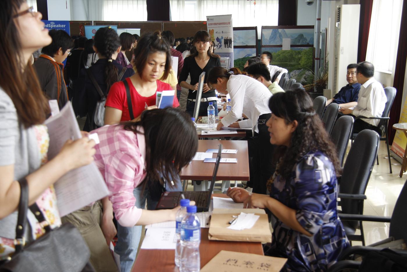 本次招聘会共有中华中医药学会分会、北京同仁堂等21家单位参会,总计提供就业岗位132个。招聘会现场气氛热烈,人头攒动。当日约有三百名应届毕业生到场参加应聘。人才招聘处梁军副处长、基础医学院副书记杜伟、中药学院副书记艾璐到场与用人单位亲切沟通,了解他们的需求,对他们的到来表示欢迎。招聘过程中,各招聘单位普遍对员工表现出的思想素质和精神面貌表示满意,多家单位与我们的应届毕业生当场约定了面试时间,招聘会用人单位共收到简历近500余份。
