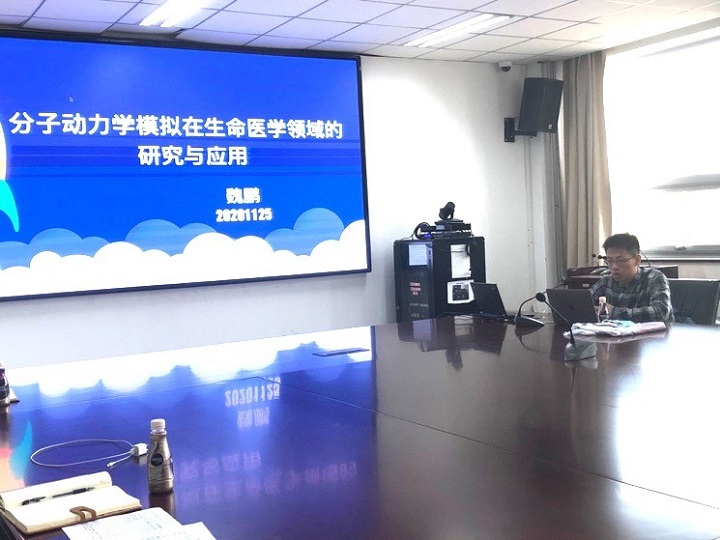 随后,科研实验中心魏鹏老师做题为《分子动力学模拟在生命医学领域的研究与应用》的专题报告。魏鹏老师结合自己的专业背景,展示了分子动力学模拟在今后生命医学领域的应用特点,并延伸开展中医药相关研究,拓宽了技术路径。同时,他分享了williamhill中国官方网站科研实验中心分子动力模拟平台建设的设想,将以中药分子或复合物为主攻方向开展相关预测和验证研究。魏鹏老师的报告新颖独特,引起了多位与会教师的兴趣。赵百孝书记针对上述内容提出设计具有中医特色的预测算法的设想,并就此展开了激烈讨论。