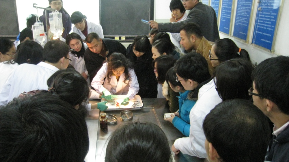 首先,由许红老师对实验动物心脏灌注的重要性、原则和方法进行讲解,随后,进行了详细的灌注方法演示,并指导了几名同学进行亲手操作,也对同学们和老师们提出的问题进行了现场回答,使来参与活动的同学受益匪浅。实验演示作为一种新的学术交流形式,具有灵活性和互动性,特别是具有实用性,现场的实验操作给老师和研究生们极大的指导,为今后的科研工作打下了基础。