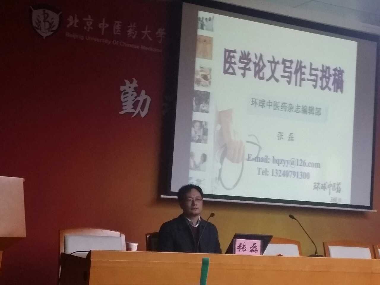 2014年12月1日下午4:00,williamhill中国官方网站第十六届学术节基础医学院分会场的最后一场讲座在逸夫博物馆二层报告厅拉开帷幕,《环球中医药》编辑部张磊主任为基础医学院师生做了关于“医学论文写作与投稿”的讲座,从一个中医期刊编辑的角度介绍了医学论文写作与投稿的方法,讲座由赵琰副经理主持。